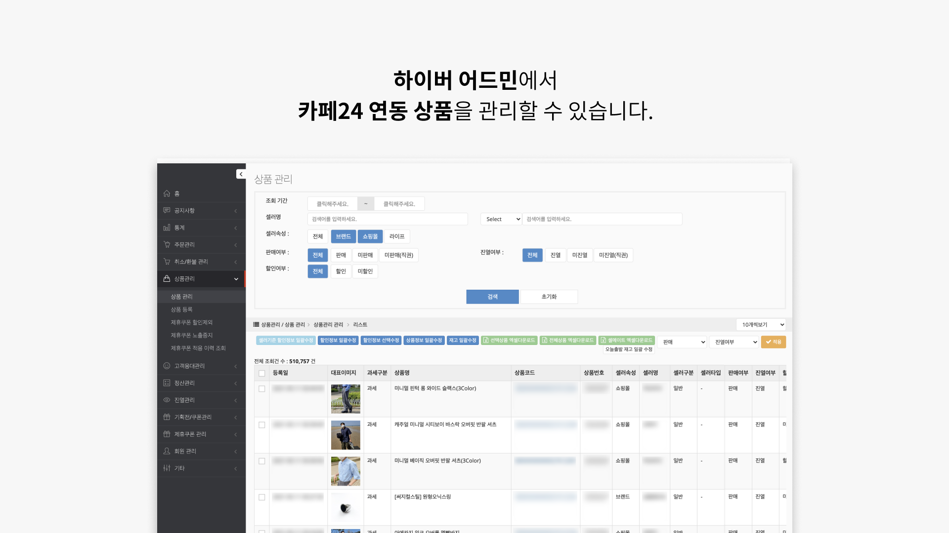 카페24에 상품을 등록하시면 자동으로 하이버에 상품이 등록됩니다.