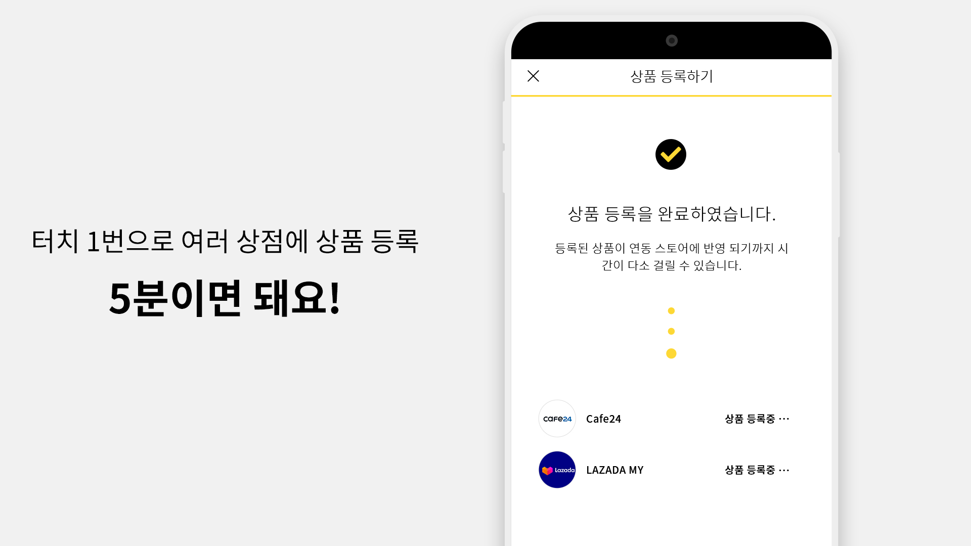 제품 촬영, 사진 보정, 상점 연동까지 5분만에 끝!