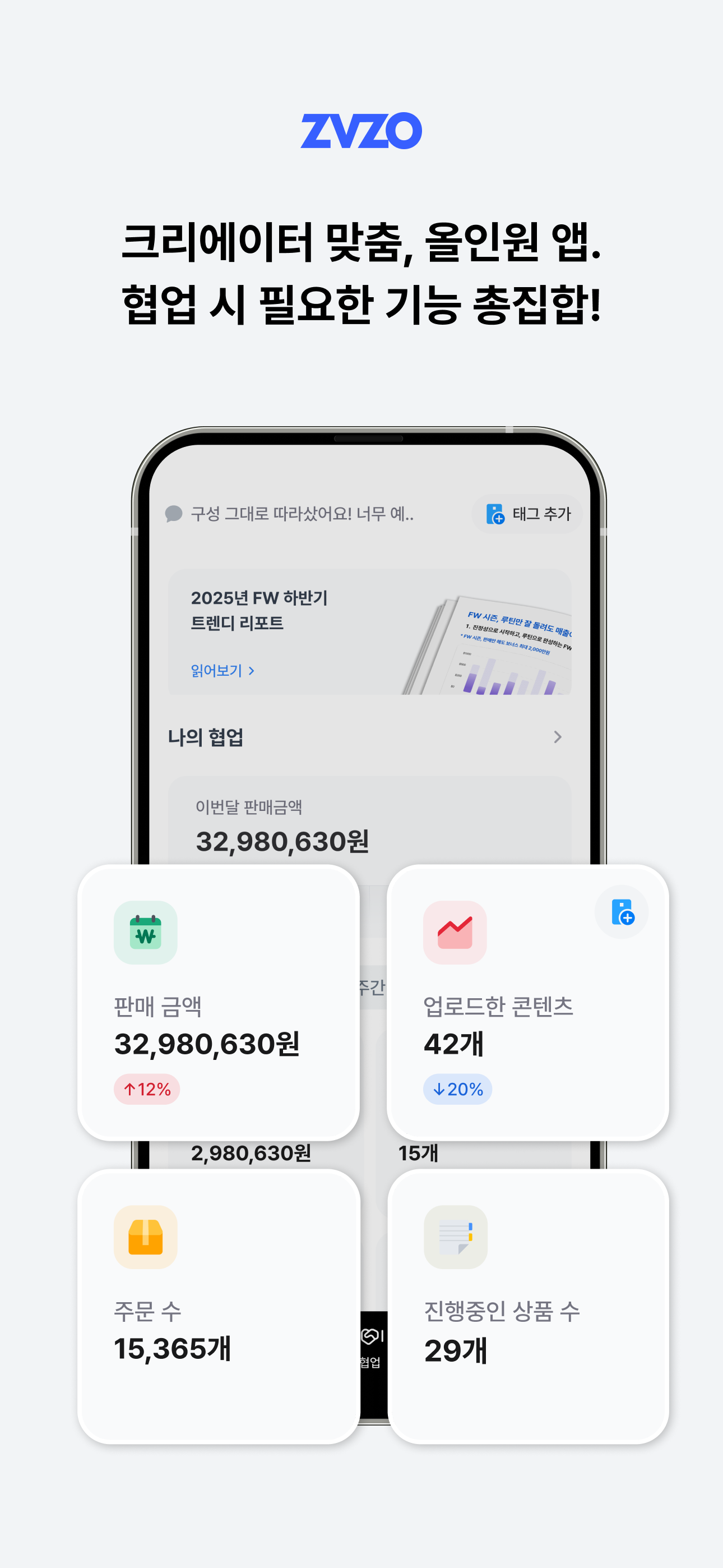 무료 설치만으로 바로 ZVZO의 검증된 인플루언서들과 협업할 수 있어요.