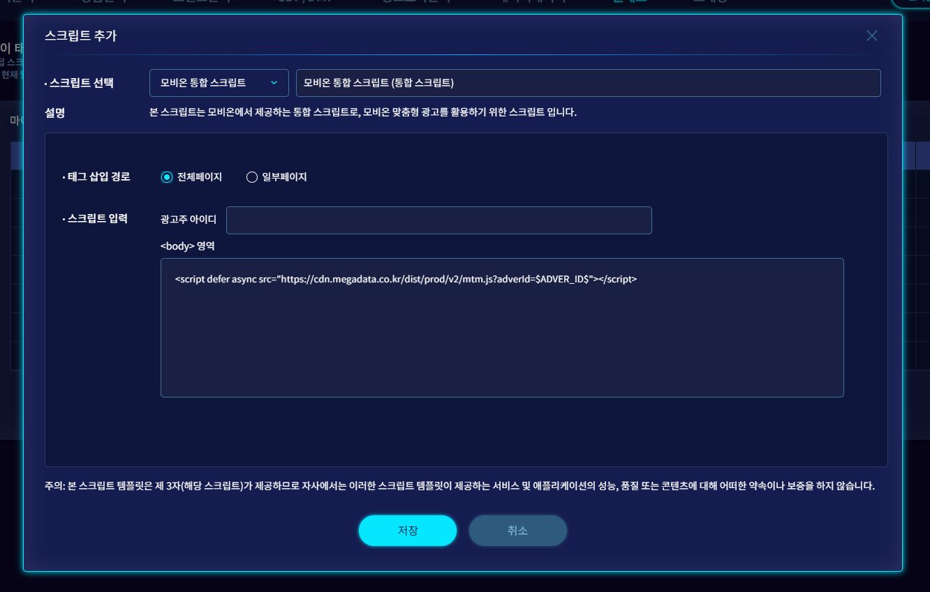 원하는 스크립트를 Head/Body 등 원하는 위치에 삽입 하세요.