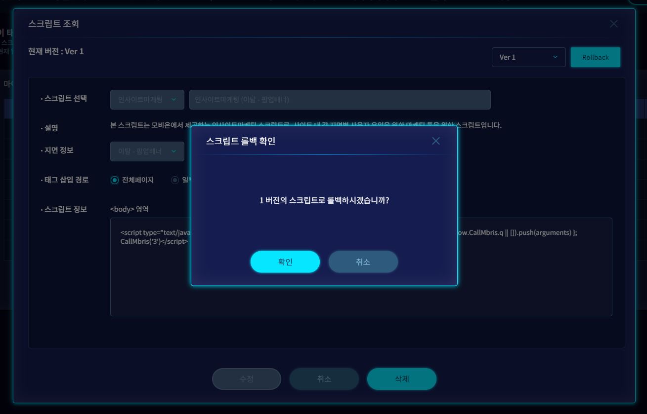 기존 스크립트에 대한 수정 등 버전관리까지 가능합니다.