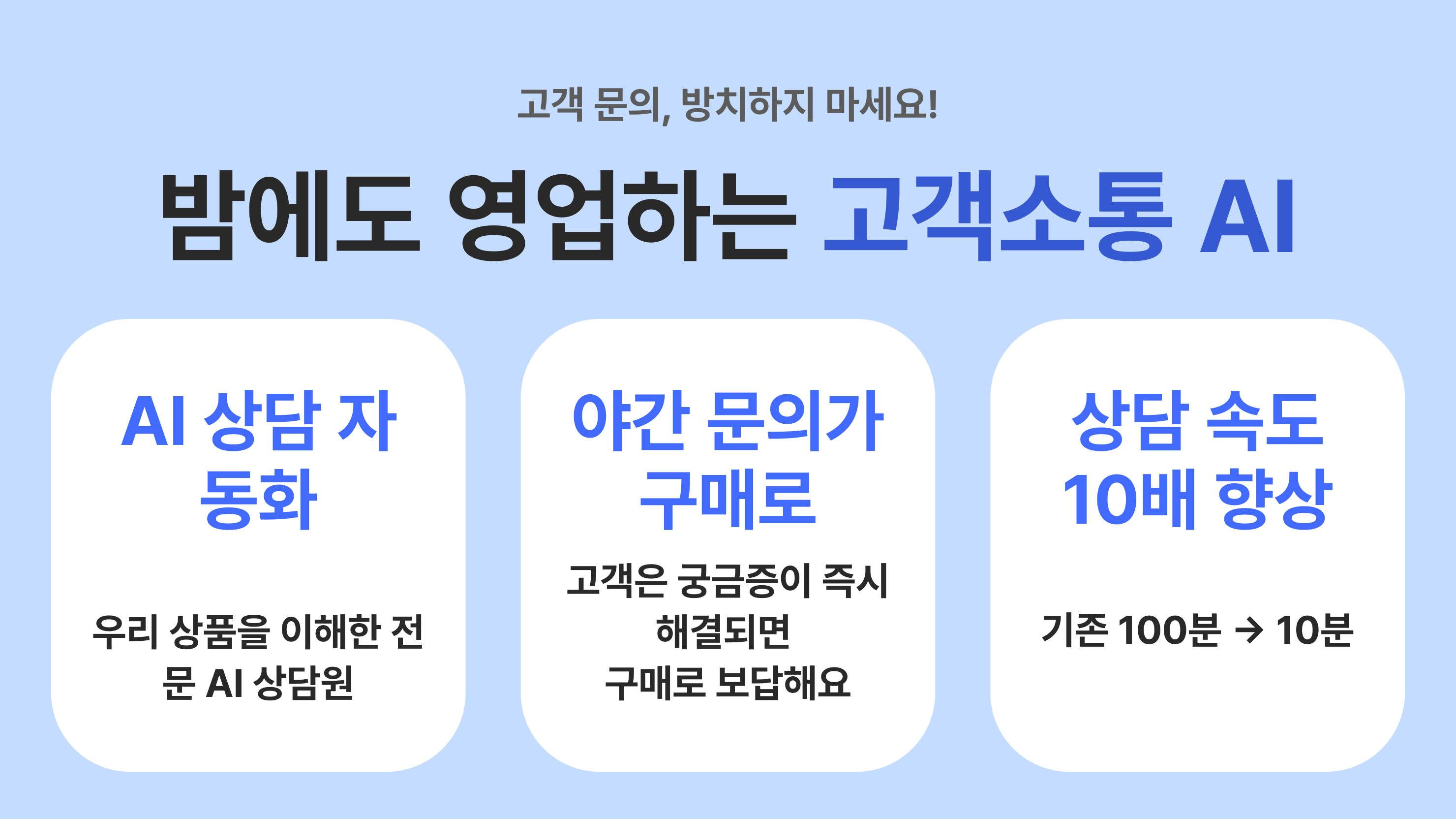 24시간 고객 상담을 챗봇이 대신하여, 고객 만족도가 향상됩니다.