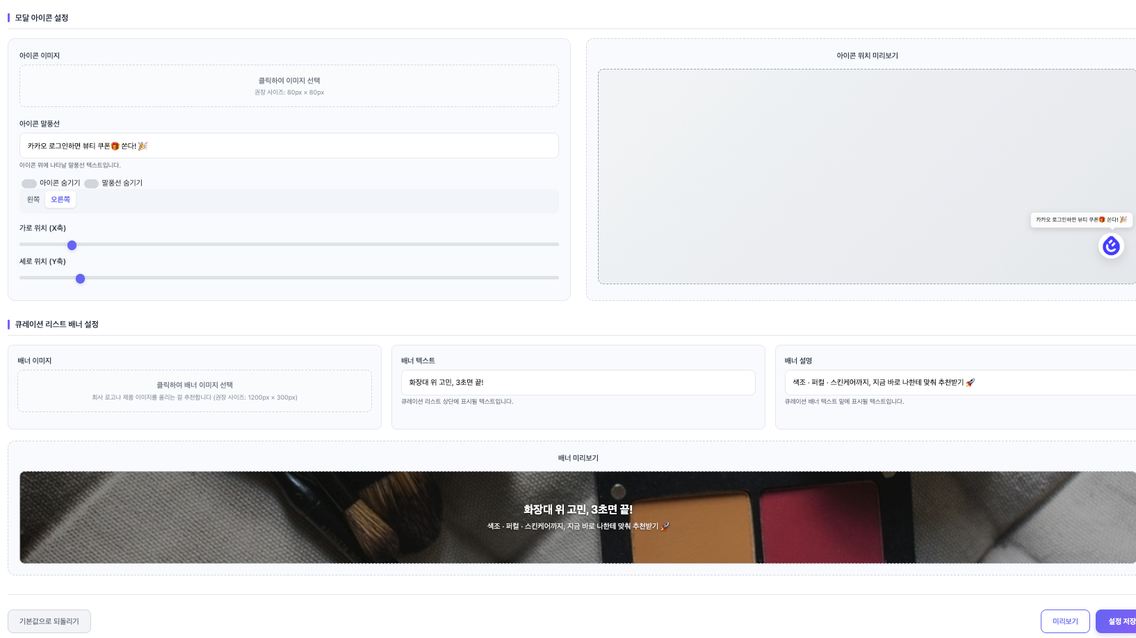 데이터 기반 성과 분석 및 최적화 지원 실시간 대시보드로 질문별 성과, 고객 행동 패턴, 전환율 등 핵심 지표 추적 및 A/B 테스트 기능 제공