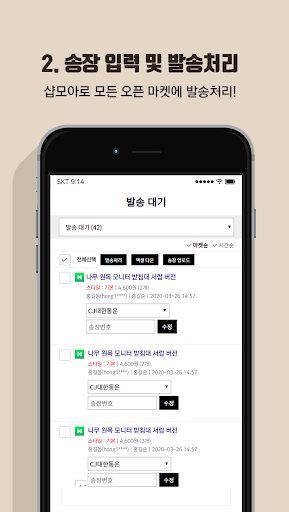 자사몰외에 오픈마켓의 주문도 모두 모바일로 관리!