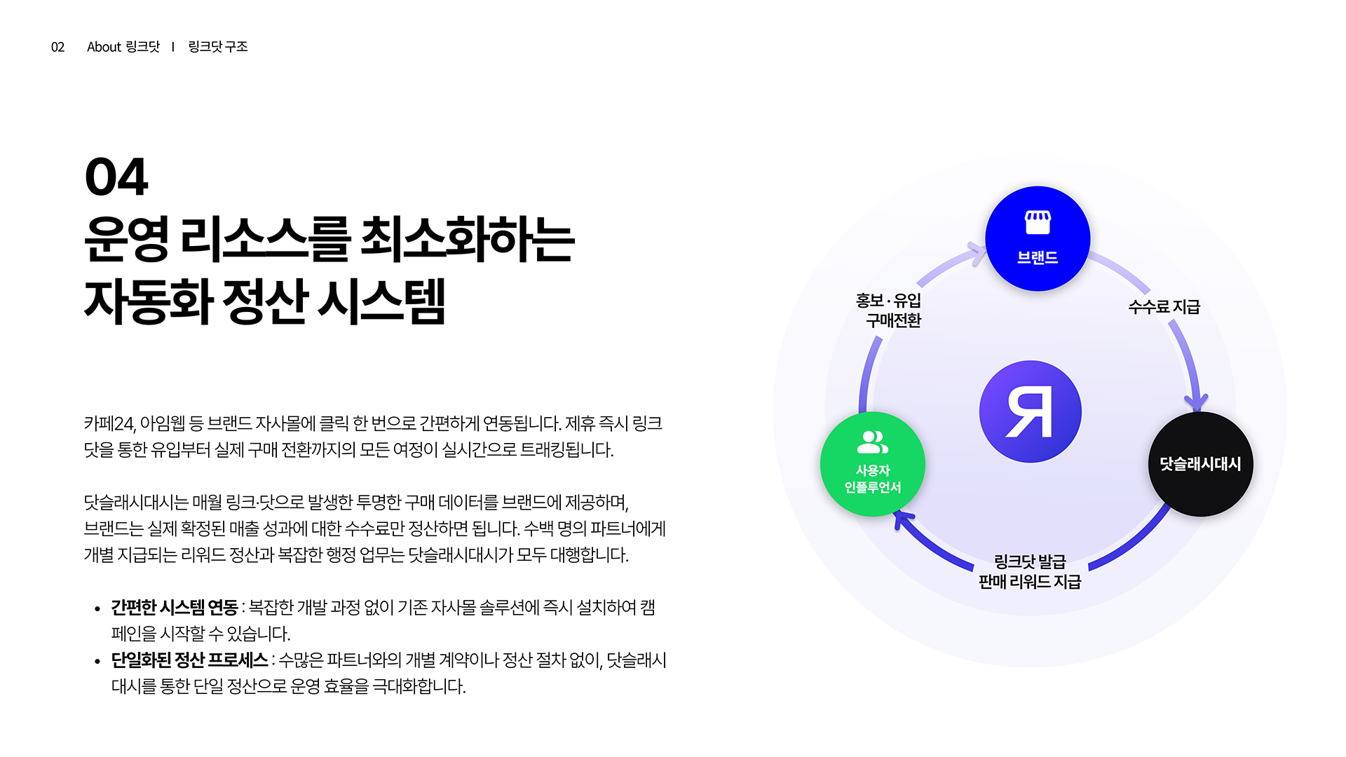 운영 완전 자동화: 카페24 연동 한 번으로 상품 DB 동기화부터 파트너 정산/지급까지 100% 대행