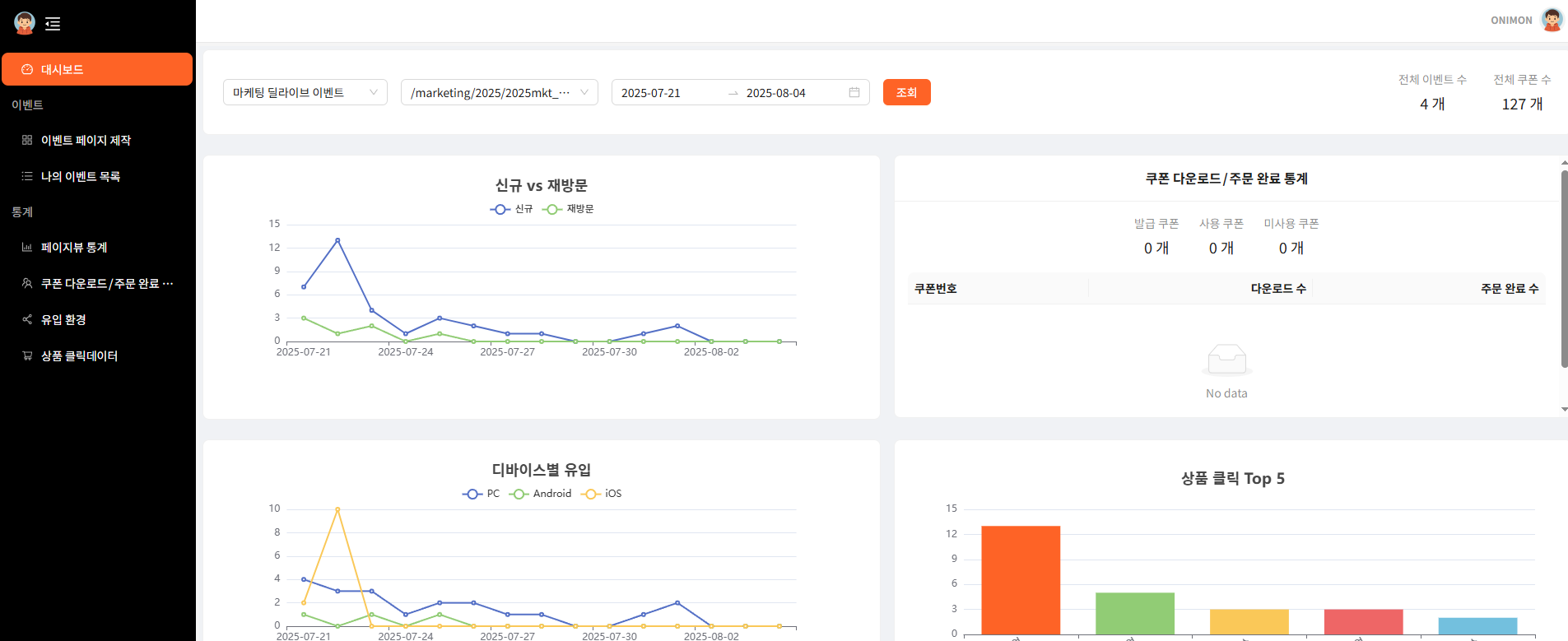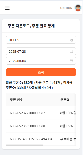 쿠폰 다운로드 및 결제 이력을 연계 추적