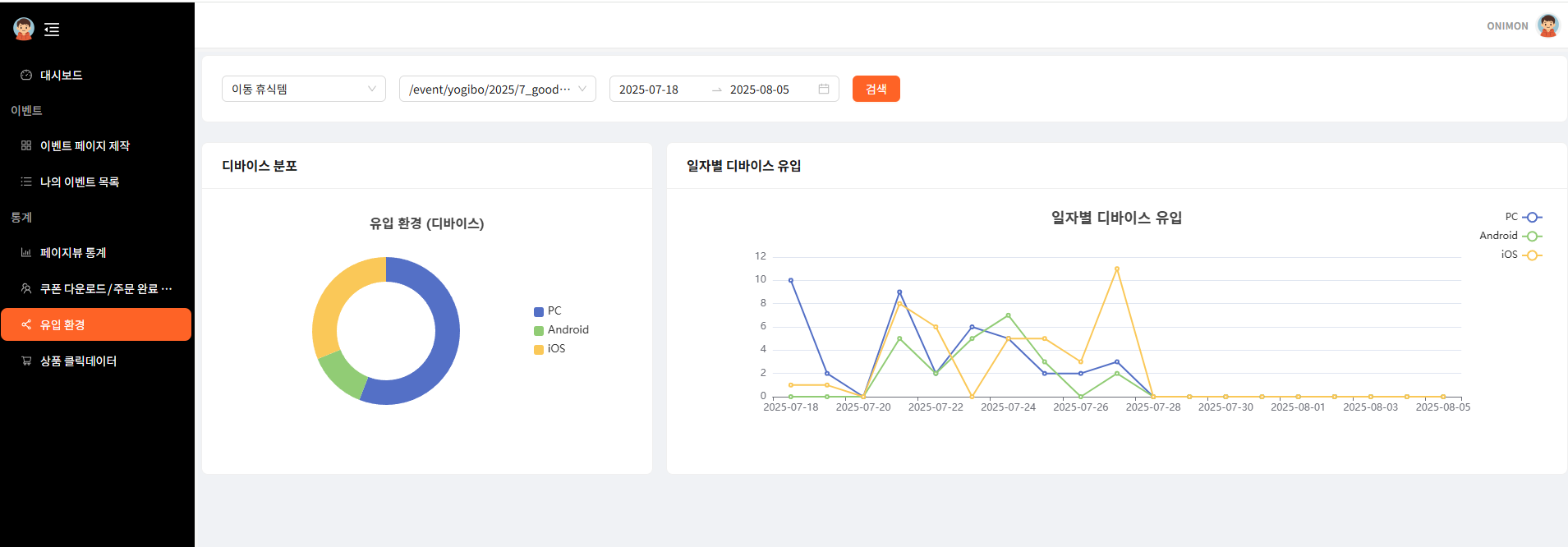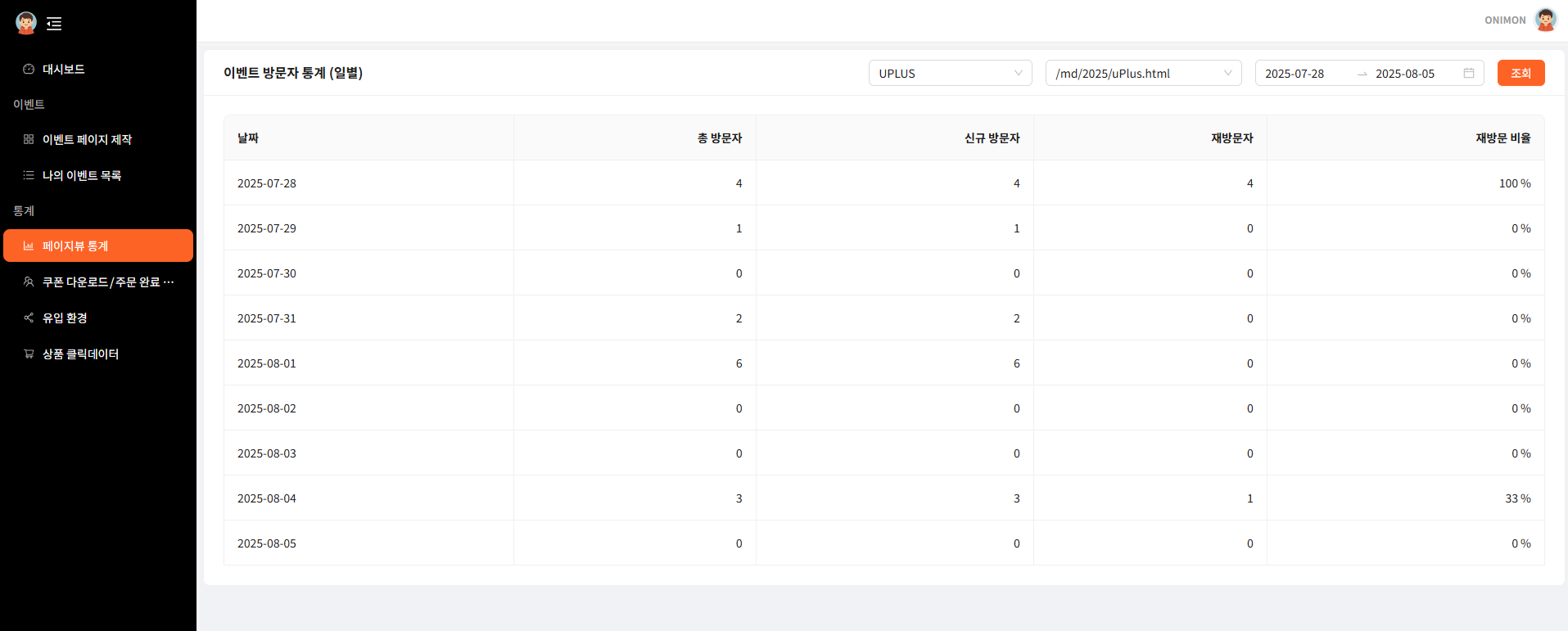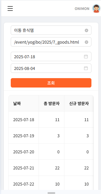 프로모션 페이지 내 페이지뷰를 실시간 모니터링