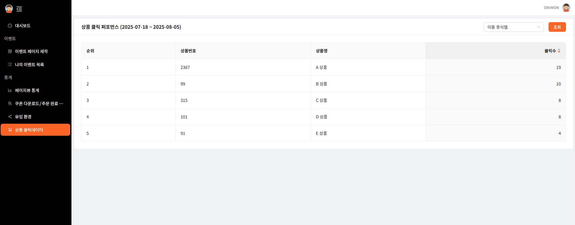 상품별 클릭 데이터를 수집·분석 가능