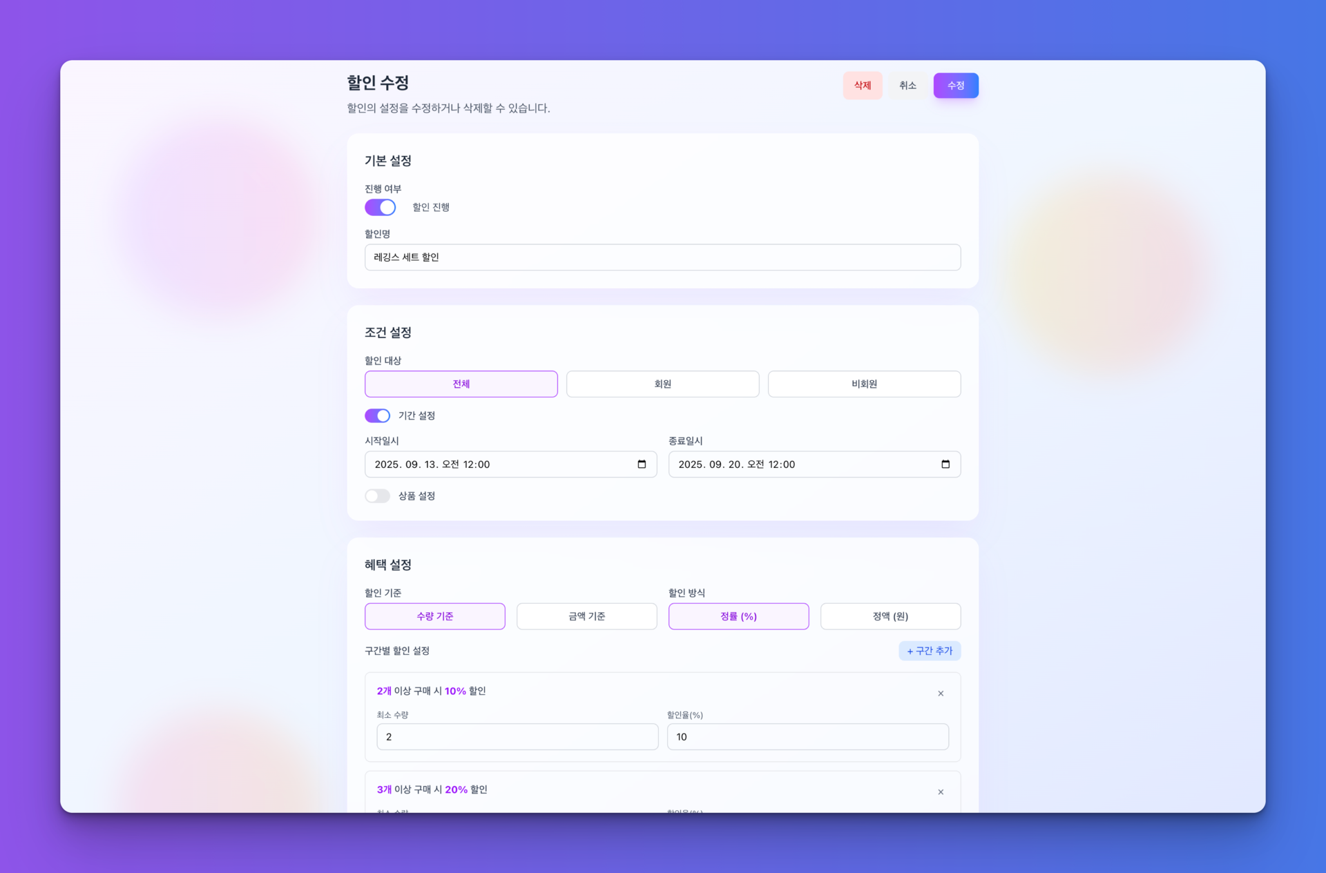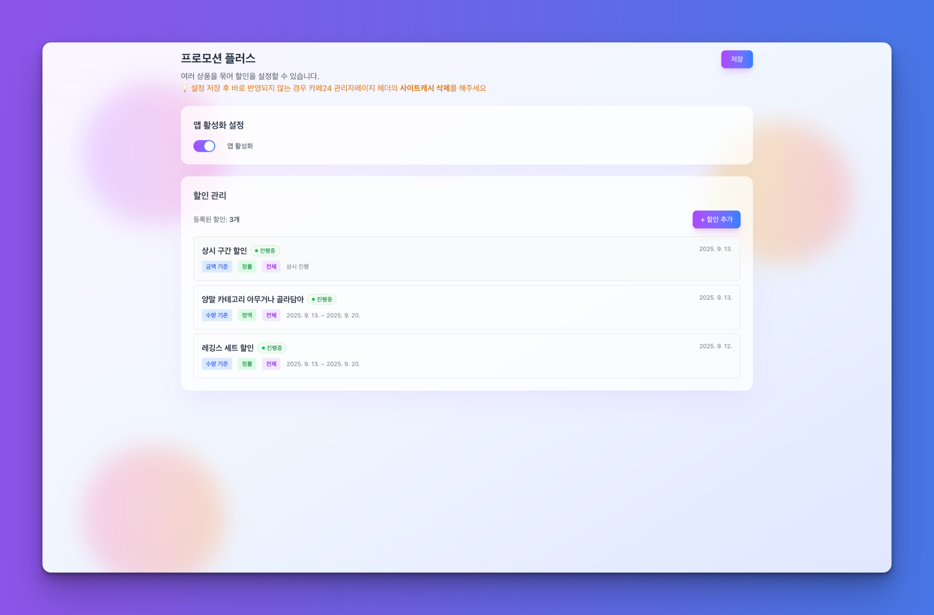 상시/기간별 할인 자유롭게 설정