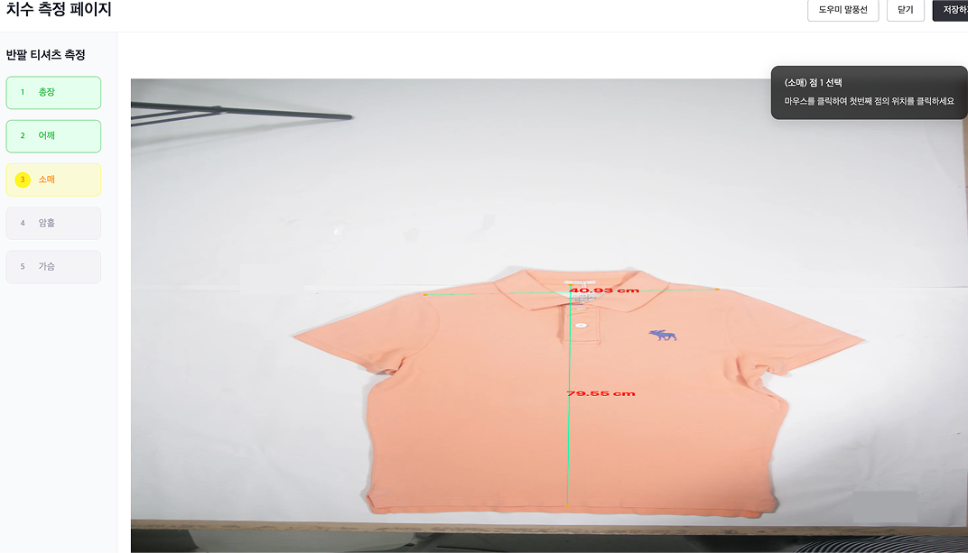 손으로 하나하나 치수를 재는 것보다 더 적은 오차로 온라인에서 편하게 치수를 측정하세요. (완전 자동 측정 업데이트 예정)