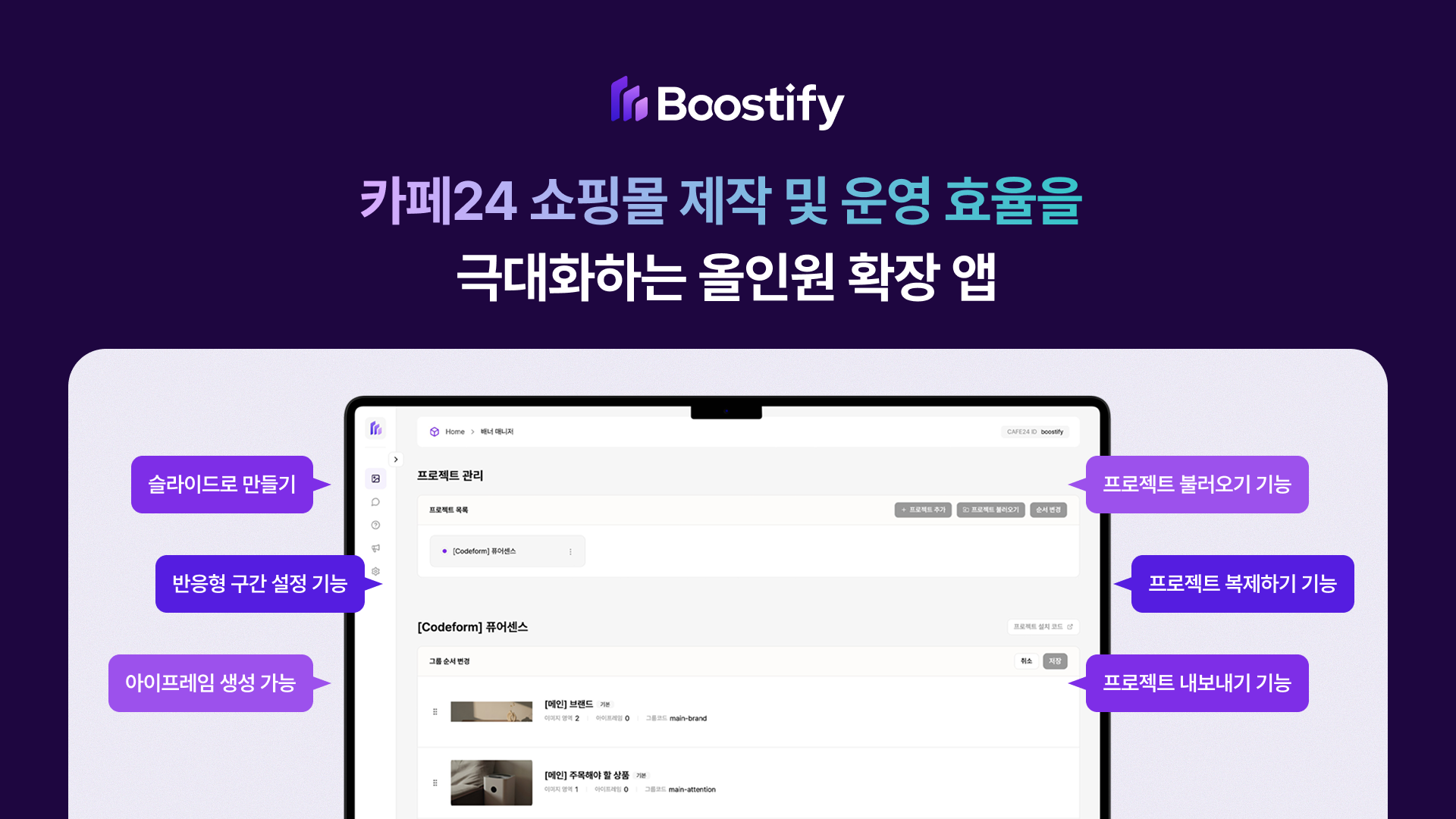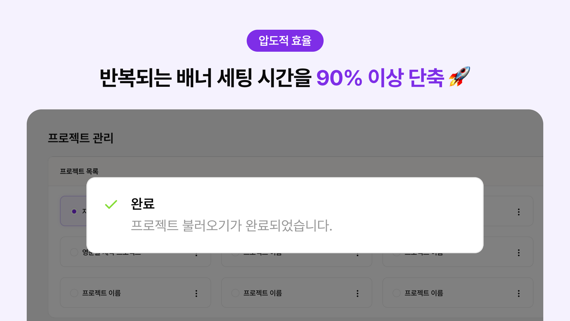 [압도적 작업 효율 ⚡️] 프로젝트 내보내기/불러오기 및 복제 기능을 통해 반복되는 배너 세팅 시간을 90% 이상 단축할 수 있어요.