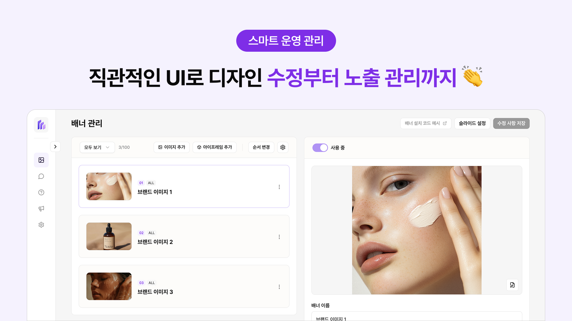 [스마트 운영 관리 ⚙️] 직관적인 UI로 디자인 수정부터 노출 관리까지 한 곳에서 해결하여 웹사이트 운영의 번거로움을 크게 줄여줘요.