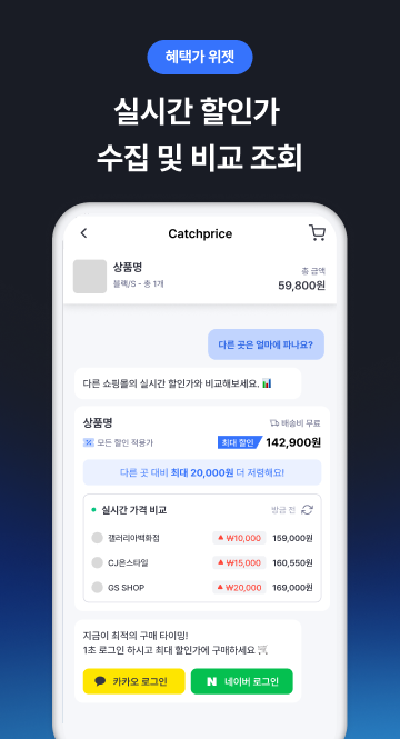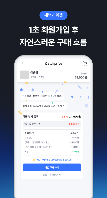 [혜택가 위젯] 혜택 비교 - 회원가입 - 구매로 이어지는 챗봇 대화 설계로 상세페이지 유입 고객을 구매까지 빠르게 이끌어요