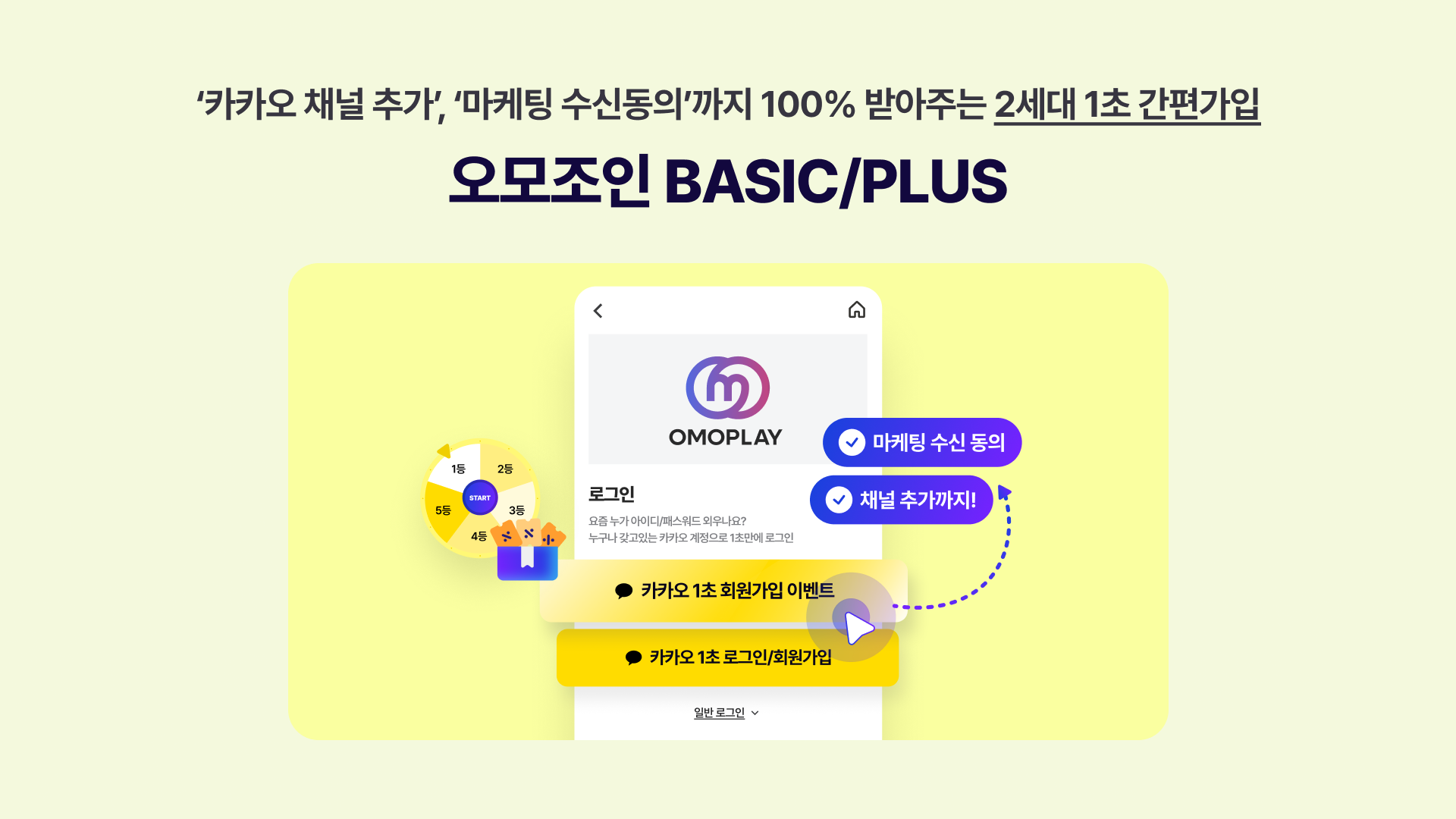 별도로 '카카오 채널 추가' 이벤트를 할 필요 없습니다. 2세대 '이벤트 1초 간편가입'으로 한번에 받으세요!