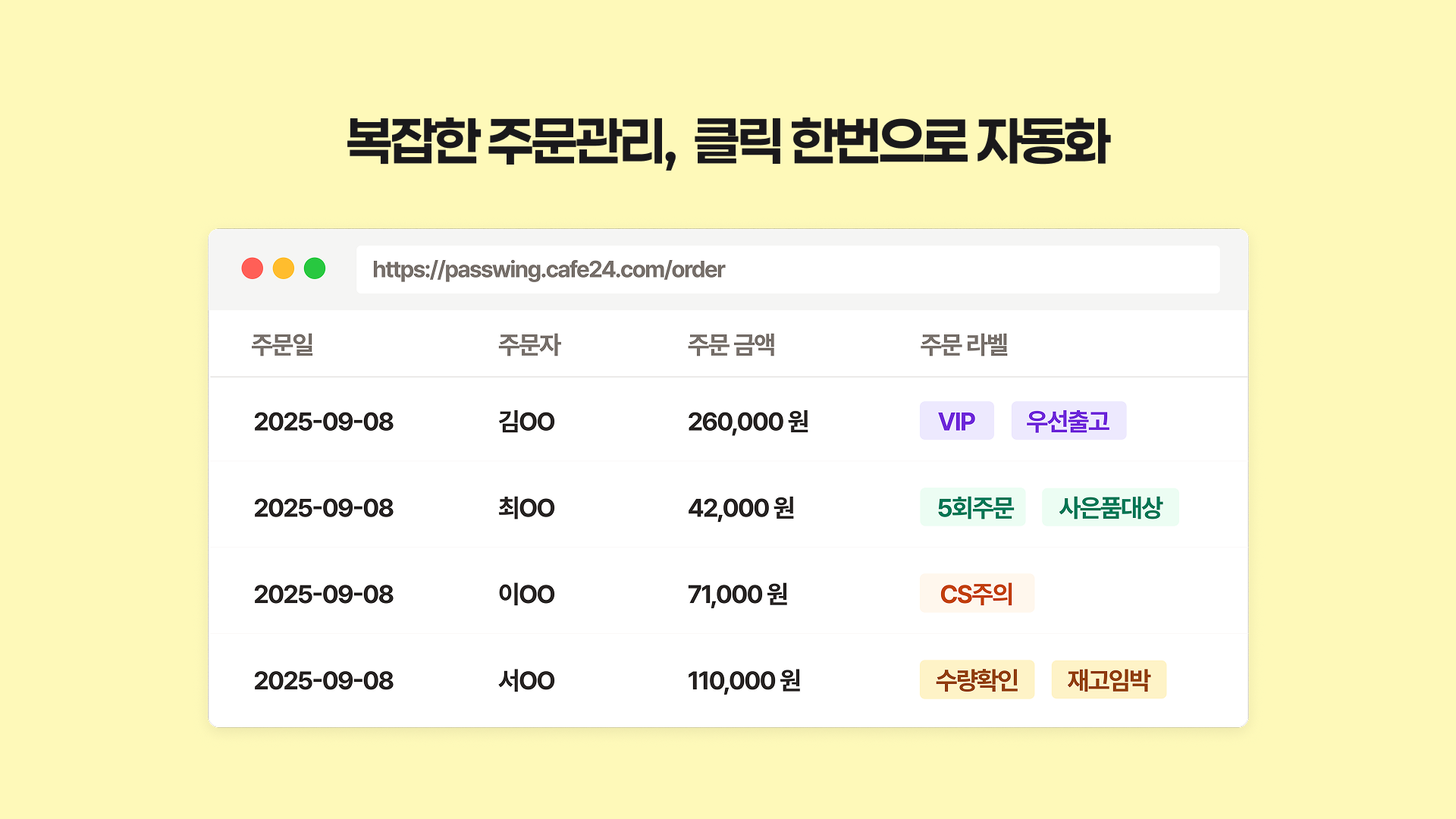 🔖 주문 조건에 따라 자동으로 라벨이 붙어 누락·실수를 예방할 수 있습니다.