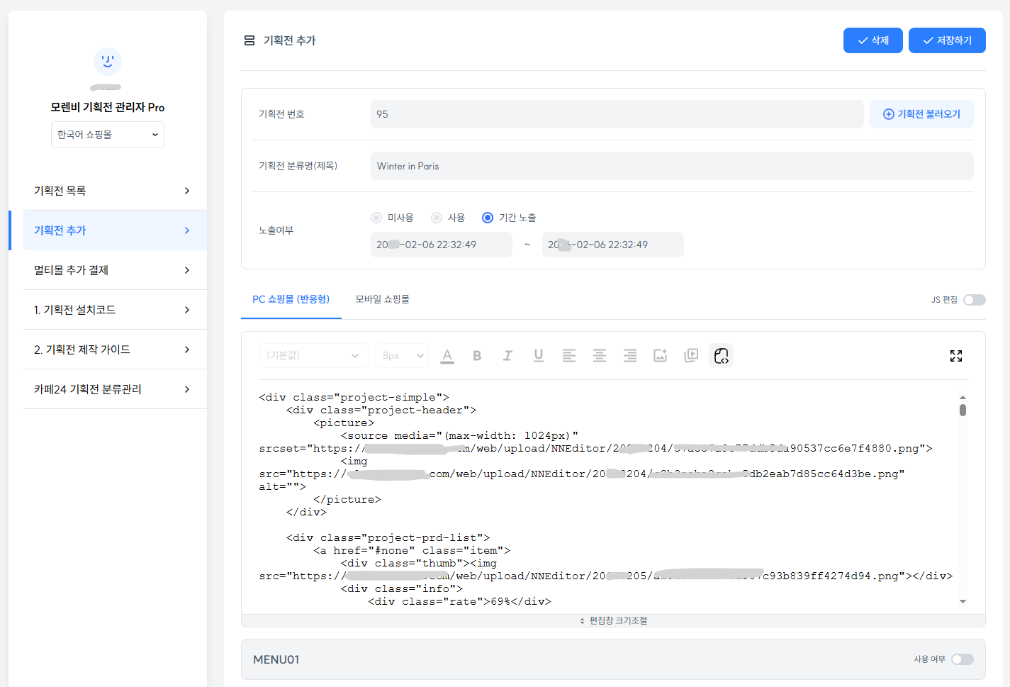 각 기획전별 개별 디자인 설정 및 관리