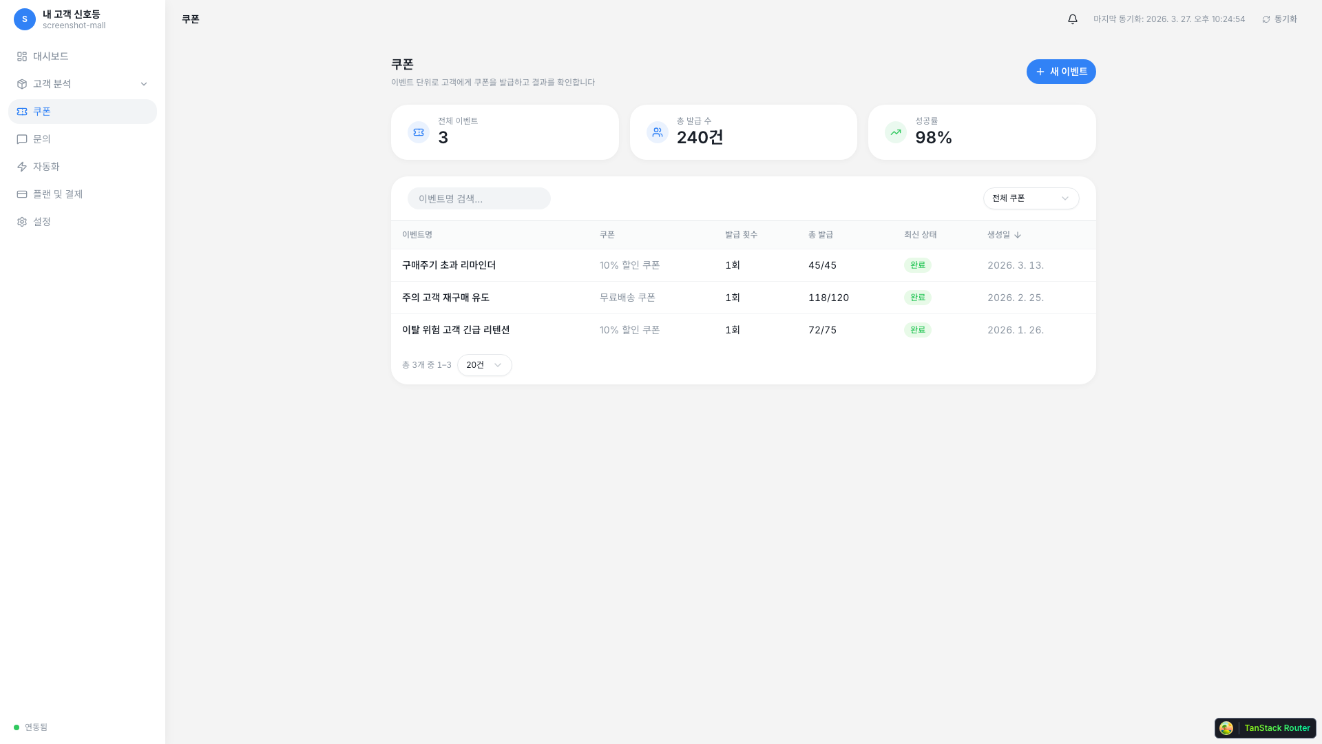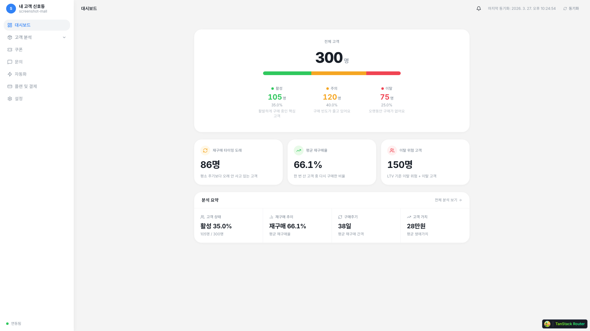 이탈 위험 고객에게 자동으로 쿠폰을 발송하여 재구매를 유도합니다.