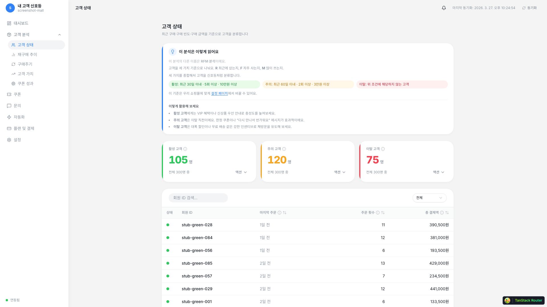 Cafe24 주문 데이터를 자동 연동하여 별도 설정 없이 바로 시작할 수 있습니다.