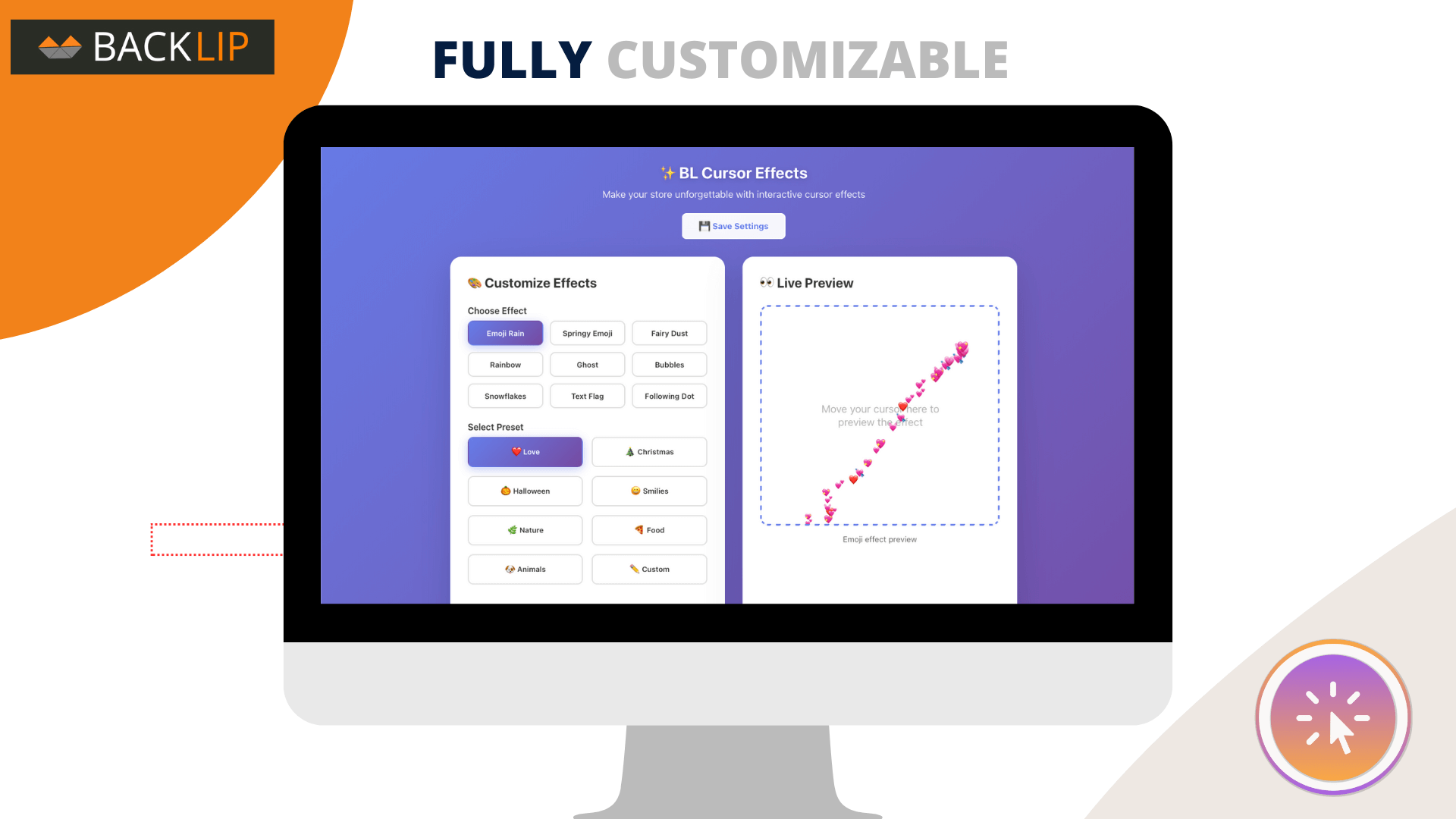 Customize your cursor effects with preset emoji collections for special occasions like Christmas, Halloween, or Love themes to enhance seasonal promotions